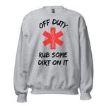 Because healing others starts with taking care of yourself—meet the Off Duty, Rub Some Dirt On It Sweatshirt, your cozy badge of honor for every post-shift recharge. This exclusive self-care sweatshirt...