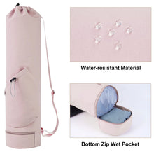 Yoga mat bag with water bottle pocket and bottom wet bag. Sports yoga mat with shoulder strap and multifunctional storage bag